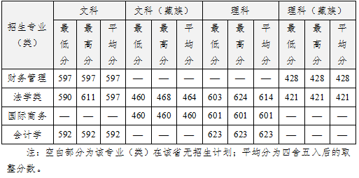 2017年分省分专业录取分数线