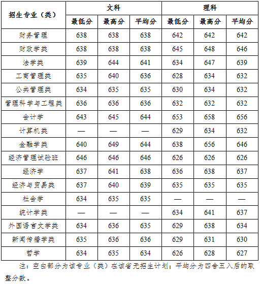2017年分省分专业录取分数线