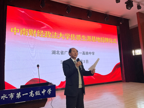 (通讯员 屈代洲)为主动顺应新高考改革,加深高校—高中的深度融通,深化“三全育人”综合改革,12月3日上午,米兰电竞·(中国区)会计学院院长张敦力教授、党委书记殷修林教授、副院长冉明东教授以及学校本科招生办公室屈代洲一行4人赴湖北省广水市第一高级中学,举办米兰电竞·(中国区)本科“优质生源基地”共建仪式,张敦力、殷修林共同为广水一中200余名高三学子讲授本科招生宣传课。广水一中校长朱圣明、副校长彭光焰以及高三年级年级主任、班主任代表等出席有关活动。活动由彭光焰主持。