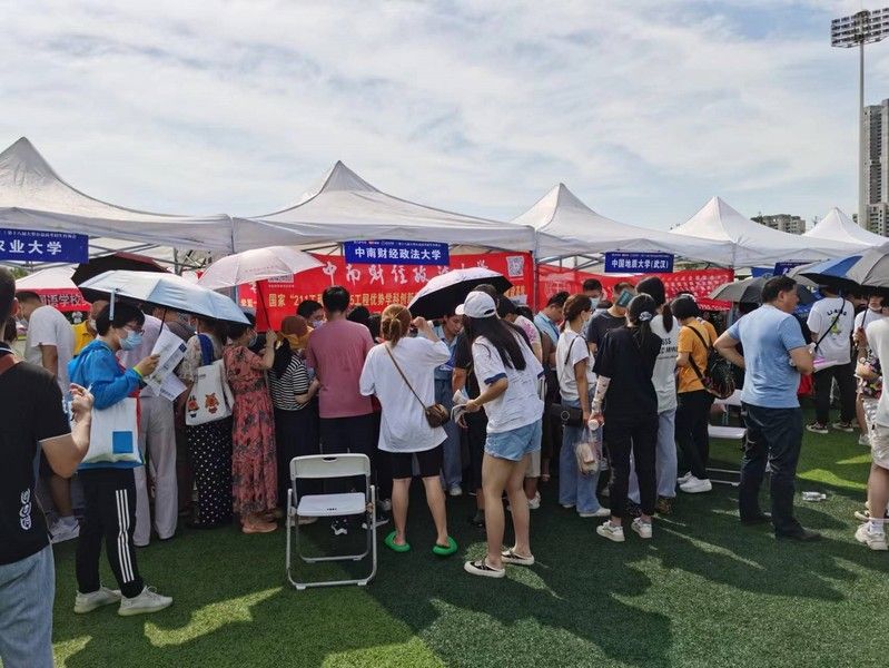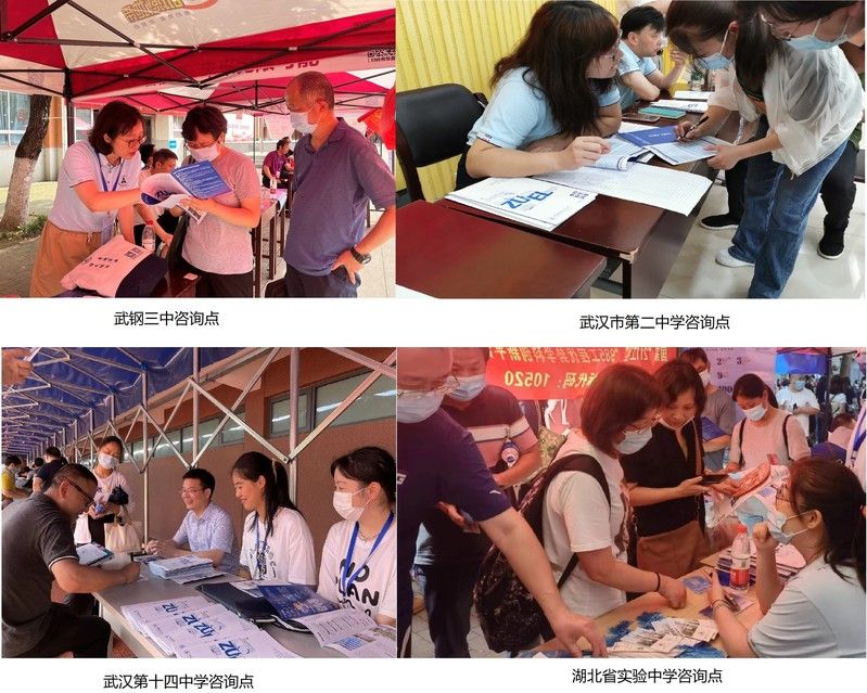 在武汉学院举行的第十八届高考招生咨询会,来自全国130多所高校在现场为考生及家长答疑解惑,吸引了近6万人次前来咨询。党委学生工作部、人民武装部副部长范献龙,就业指导服务中心副主任詹万明及招生咨询员曾紫荣、闻天棋、穆帆、尤志兵在咨询现场顶着高温酷暑为考生及家长精心讲解我校招录政策、指导考生进行志愿填报。覃红首先对全体招生咨询员的辛勤付出和不懈努力表示衷心的感谢,提醒大家天气炎热,注意防暑降温,并仔细询问了前来咨询的生源情况、考生和家长对学校比较关注的问题。