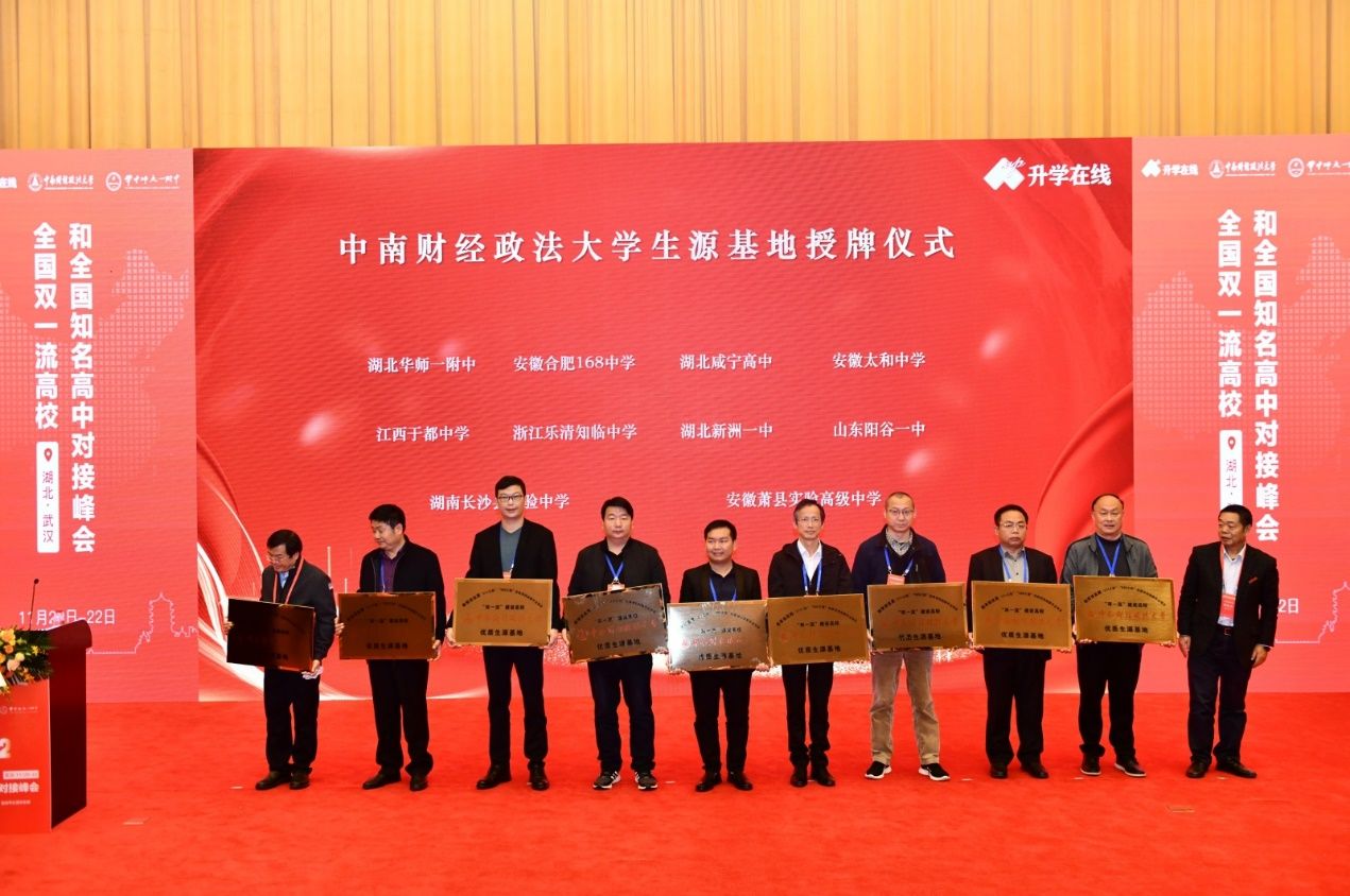 校党委学生工作部部长兼人民武装部部长余小朋,党委学生工作部副部长兼人民武装部副部长范献龙,党委学生工作部、人民武装部办公室主任左思在峰会现场先后为宜昌市夷陵中学、长沙县实验中学、公安一中、远安一中等28所高中进行优质生源基地授牌。