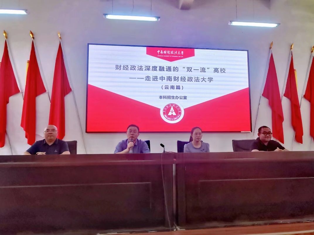 皮海鹏从红色校史、办学特色、著名学者、知名校友等方面向现场学子们详细介绍了我校基本情况。刘祚衡具体说明了学校在云南招生的方式、人数、专业设置、近三年录取分数及位次等招录信息,还从入校后的5种修业选择,毕业生就业和深造情况等给予学生们针对性指引。胡丹则以在校学生的身份分享了她在中南大的学习、生活并就同学们关心的问题做出了亲切解答。