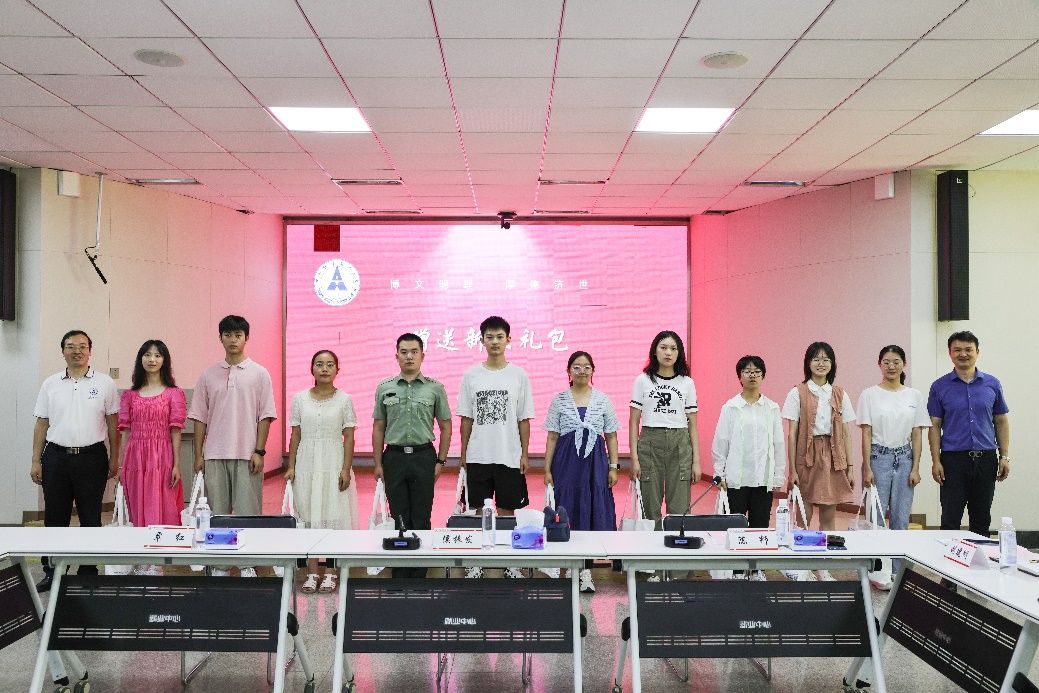 (通讯员 凌鸿翔 牛静 摄影 彭佳)7月24日上午,学校举办2023级本科新生录取通知书颁发仪式暨新生代表座谈会。校党委书记侯振发,校党委副书记陈狮,校党委常委、副校长覃红出席,党委办公室、学校办公室主任刘建明,党委学生工作部兼人民武装部部长、工商管理学院党委书记余小朋,党委学生工作部兼人民武装部副部长范献龙,后勤保障部副部长、学校第八批驻村工作队队长刘进明,10名2023级本科新生及家长参加。仪式由陈狮主持。