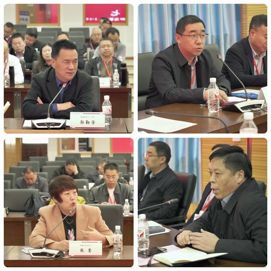 在互动交流环节,郑州市第十一中学校长郭勤学、郑州外国语学校校长袁艳磊、郑州市第九中学校长张莹、郑州市第四中学校长王政强分别介绍了所在中学学生升学情况,希望我校在学生选科、职业生涯规划、专业先修课、法治思想教学等方面给予更多的支持,诚邀经管法专家教授走进高中、送课到高中,促进高中高校人才培养衔接。