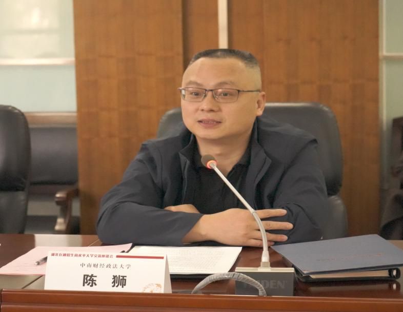 陈狮代表学校对湖南省教育厅和兄弟高校莅临学校调研交流表示热烈欢迎。他指出,一流的生源是“双一流”建设的重要基础,普通高校招生是涉及千家万户的民心工程,备受社会瞩目。学校致力于财经政法深度融通型人才的培养,也取得了一定成效,湖南省为我校输送了众多品学兼优、德才兼备的学子,学校将持续强化在湘招生工作,助力更多湖南学子到武汉学习深造。同时,也希望湖南省教育厅一如既往地支持我校各项事业发展。