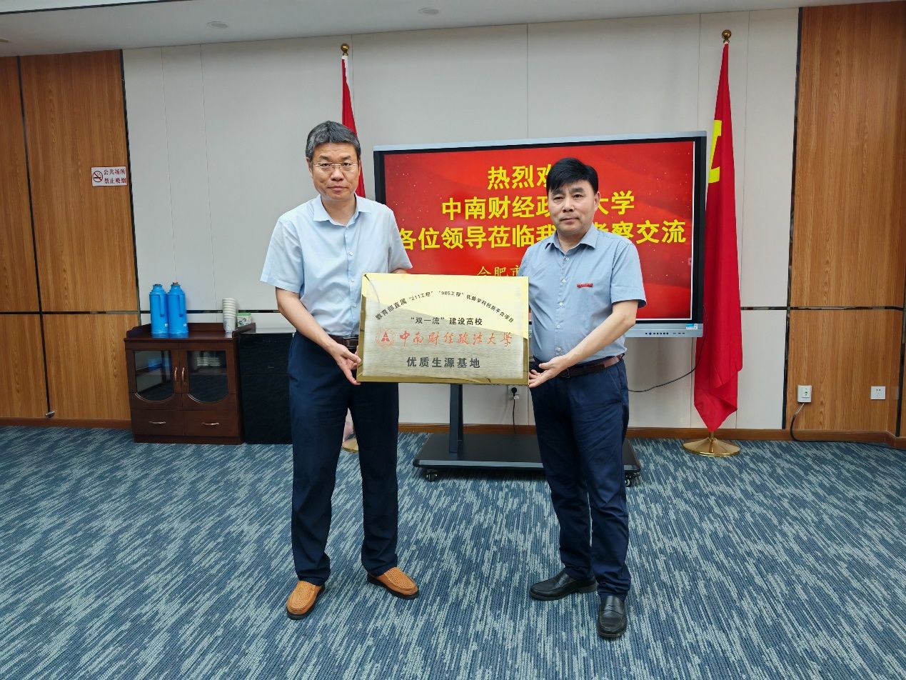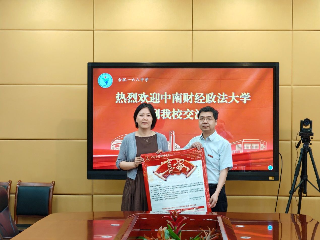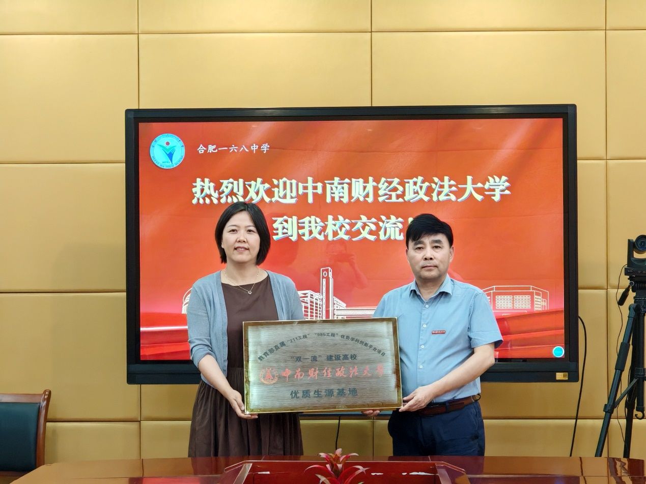 (通讯员:穆帆 张戈)安徽省等7个省份新高考改革将于今年落地,为主动应对新高考改革,加强新高考首年学校在安徽省的招生宣传工作,全面宣传展示学校改革发展新成就,加强学校与优质生源高中的情感联系。6月21日,米兰电竞·(中国区)金融学院党委书记汪平、副院长李建华、党政办主任张戈、辅导员穆帆一行4人前往安徽省合肥市开展本科招生宣传活动,代表学校授予合肥市第一中学、合肥一六八中学“优质生源基地”牌匾,并向两所学校赠送喜报。合肥市第一中学党委书记、校长封安保,党委委员、副校长张大勇,合肥一六八中学副校长许静以及两所学校师生代表出席有关活动。