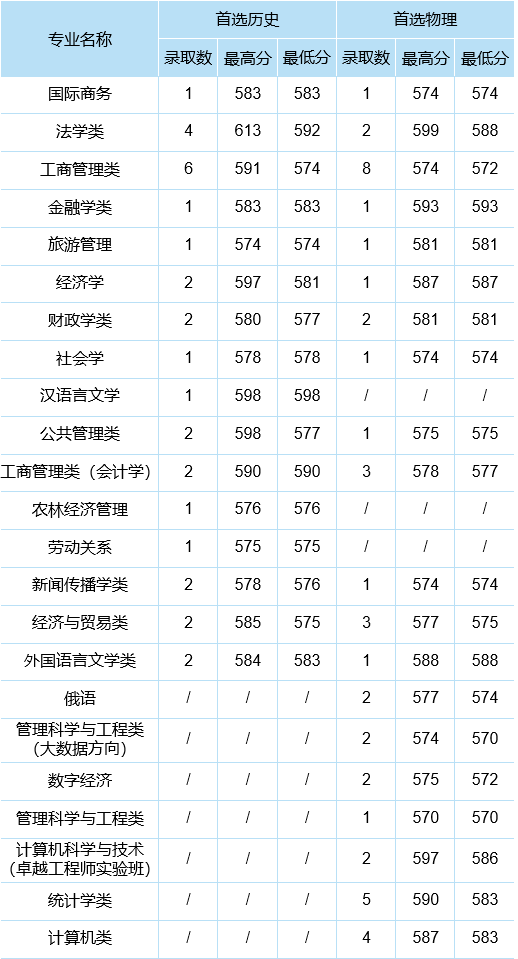 ↑分专业录取数据