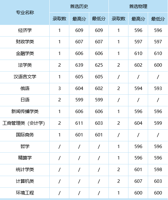 分专业录取数据