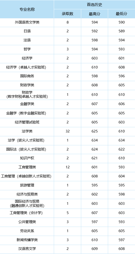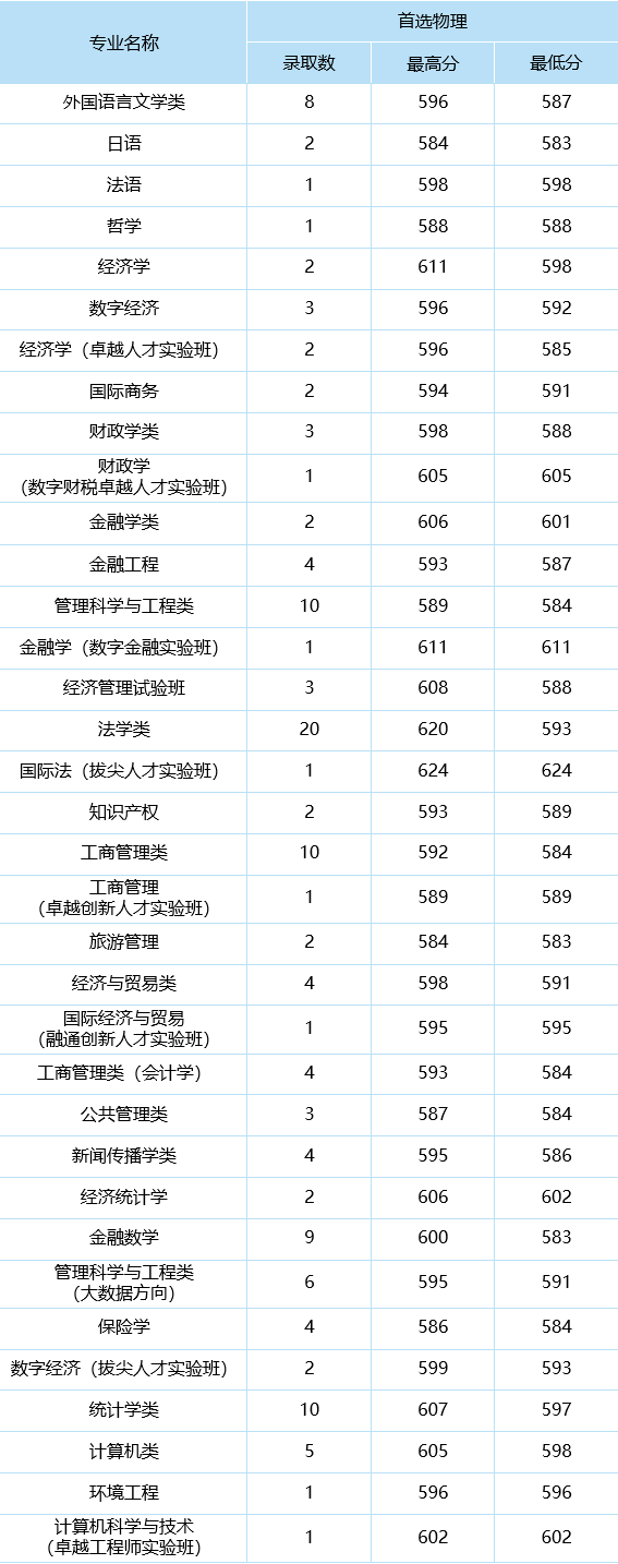 分专业录取数据