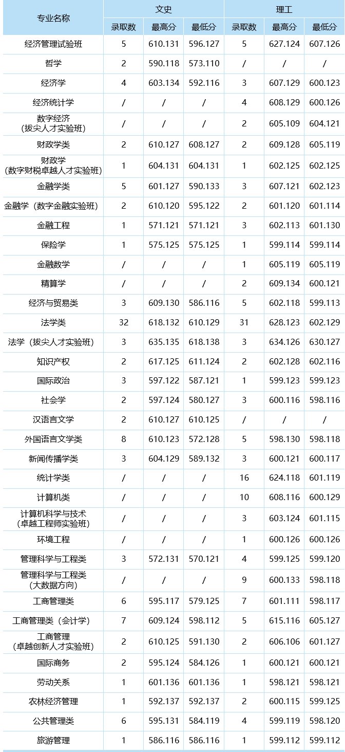 分专业录取数据