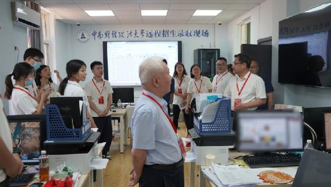 (通讯员 孙紫微 摄影 周潇 张宸浩)7月30日,校党委书记侯振发,校长、党委副书记杨灿明,校党委副书记陈狮,党委办公室、学校办公室负责人一行来到文潭楼本科招生远程录取现场,看望慰问远程录取工作人员,调研指导本科招生录取工作。