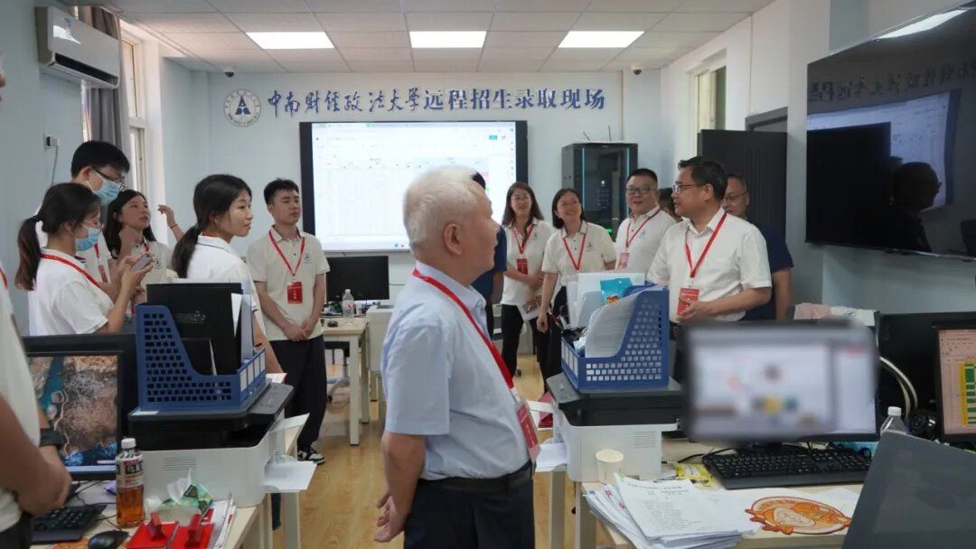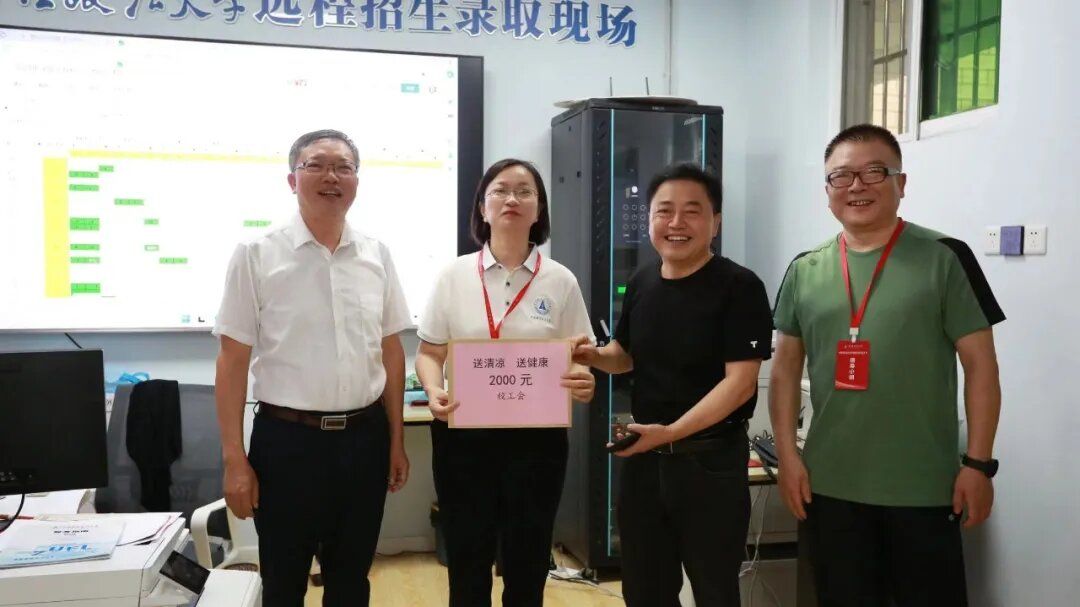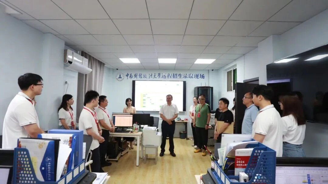 (通讯员 孙紫微 摄影 周潇)7月30日,校党委书记侯振发,校长、党委副书记杨灿明,校党委副书记陈狮,党委办公室、学校办公室负责人一行来到文潭楼本科招生远程录取现场,看望慰问远程录取工作人员,调研指导本科招生录取工作。