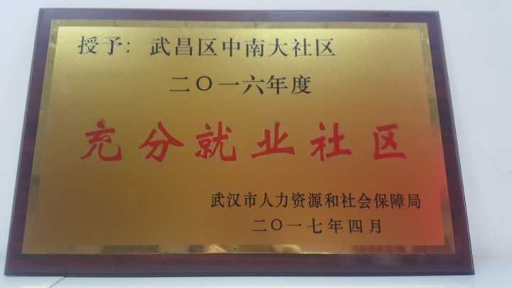 武昌区“文明社区”、武汉市“充分就业社区”称号