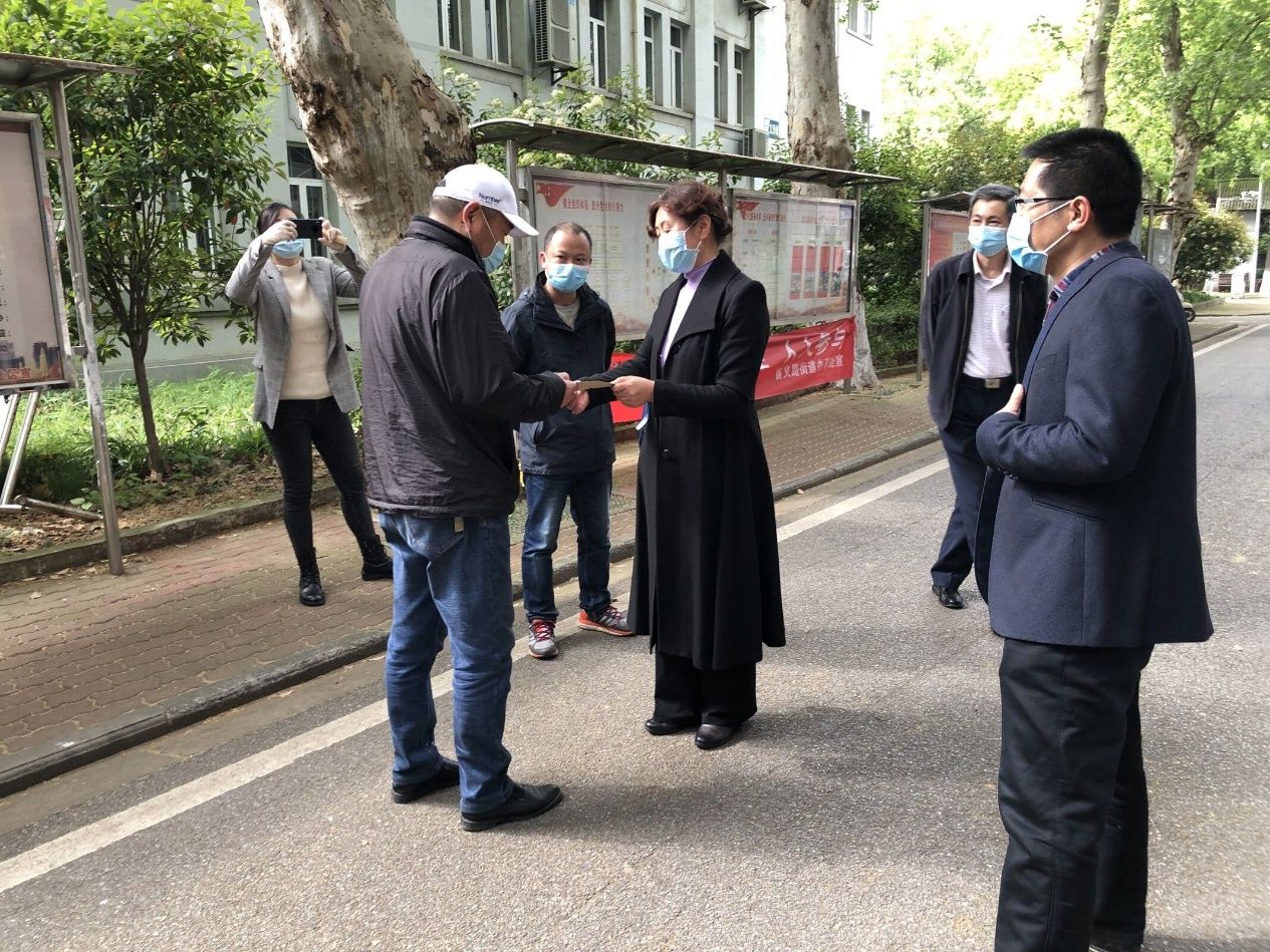 4月14日,首义路街中南大社区举办了一场具有特殊意义的活动:为下沉干部颁发抗疫保障荣誉证书,联和社区对口帮扶支部——武汉市统计局数应中心支部慰问新冠肺炎感染康复病人。武汉统计局机关党委书记王珊、数应中心支部书记夏钧,首义路街党工委副书记邓延颖、副主任张林,校保卫部部长胡海南、副部长姚荧玖,社区书记徐飞及社区工作人员等人一起参加了活动。