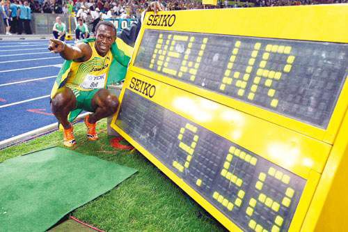 现在男子一百米纪录是由牙买加选手尤塞恩·博尔特于2009年8月17日在德国柏林田径世锦赛创造的,100米跑了9.58秒。按这个记录换算一下,博尔特的速度10.4384米/秒,大约是37.6公里/小时。5级风的风速范围为8.0-10.7米/秒,6级风的风速范围为10.8-13.8米/秒,博尔特的速度就相当在5级风内,但接近6级风的水平,也就是说,博尔特最快速度能跑赢5级风,但当风速达到6级风时,博尔特就跑不赢了。