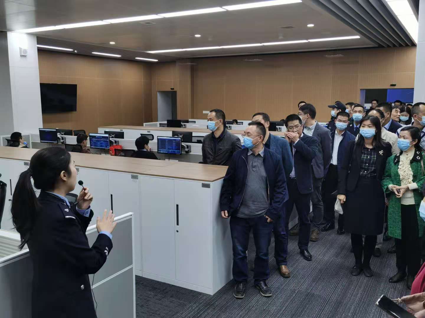 首先,学习人员参观了反电诈中心的指挥大厅,了解电信网络诈骗案件接警、处警、止付、办案等工作流程,观看反电诈宣传视频短片。