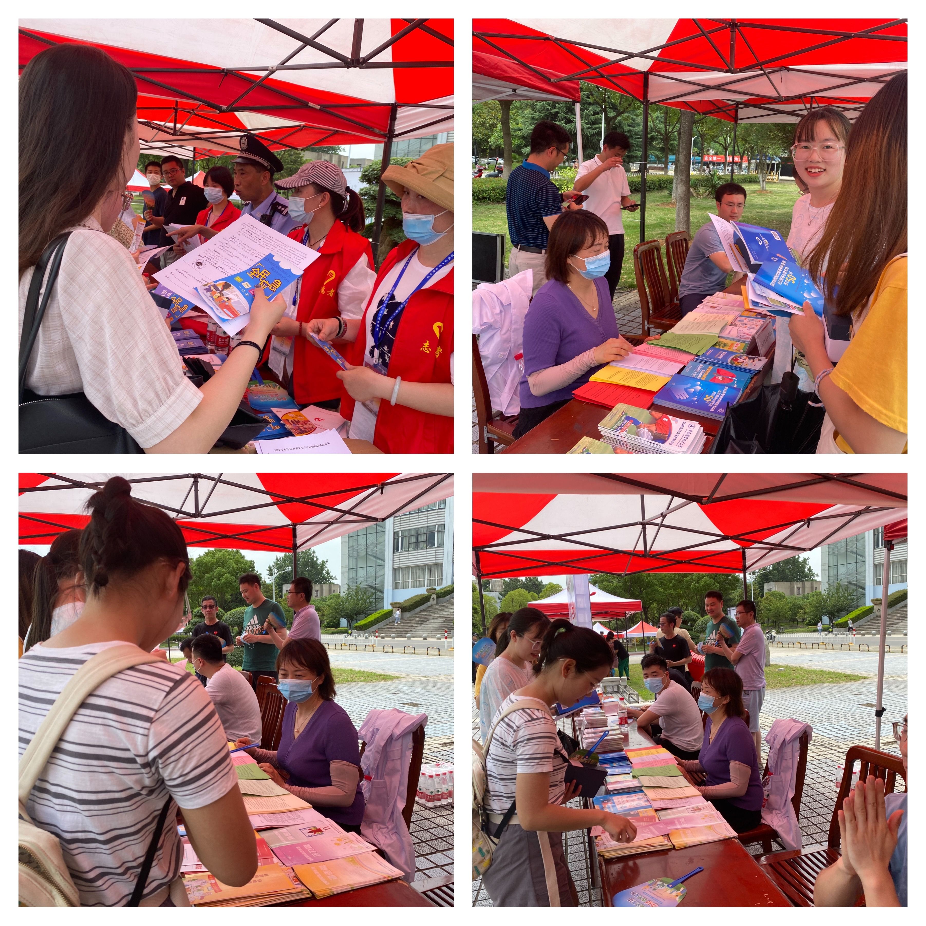 活动现场设有防范诈骗、消防安全、交通安全、预防溺水、公共卫生安全、生产安全、实验室安全、网络安全等8个咨询台,向参与活动的师生、社区居民发放各类宣传资料,并解答安全咨询问题。
