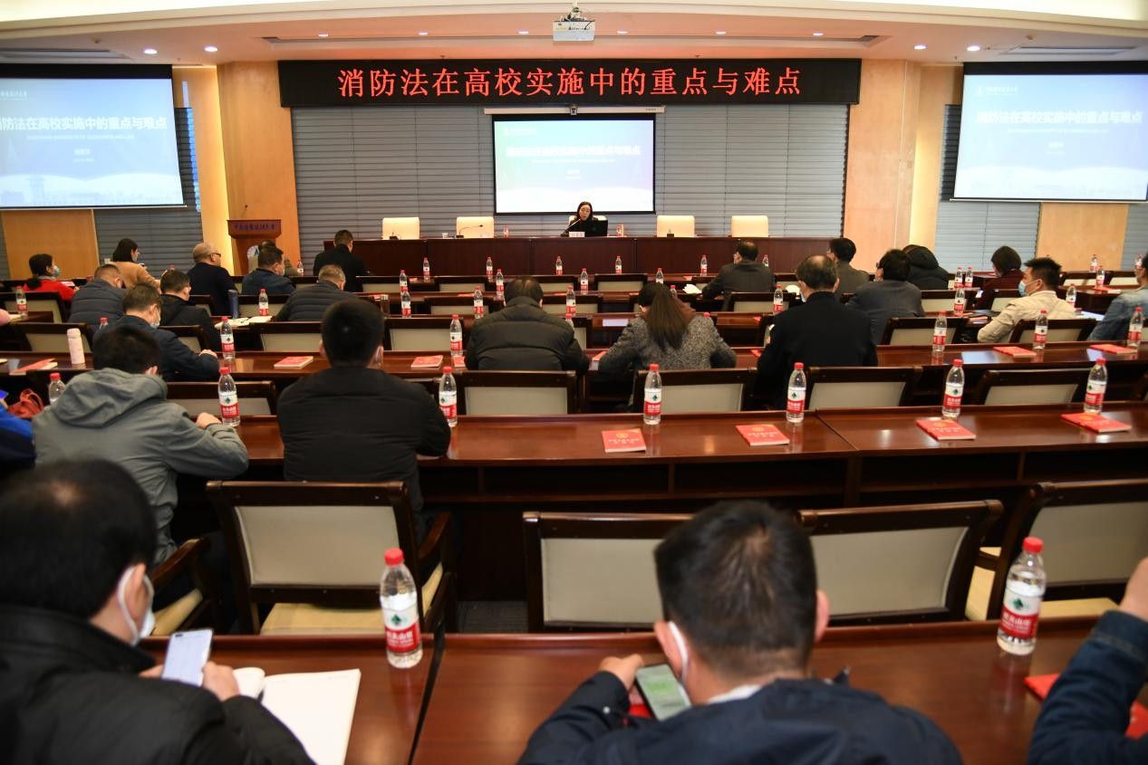 水火无情,大学作为人员密集的重要场所,做好消防工作十分重要。为深入宣传消防法律法规,普及消防安全知识,督促二级单位全面落实消防法律法规要求,切实履行消防安全工作职责,11月9日上午,正值全国消防日之际,学校在中原楼七楼会议室组织召开《消防法》普法学习会,法学院宪法与行政法系教授杨勇萍以《消防法在高校实施中的重点与难点》为主题在会上作讲座。全体校领导,二级单位(含学院、职能部门及直属机构)党政主要负责人、办公室主任,及其他消防安全重点责任人员参加会议。校党委副书记陈明主持会议。