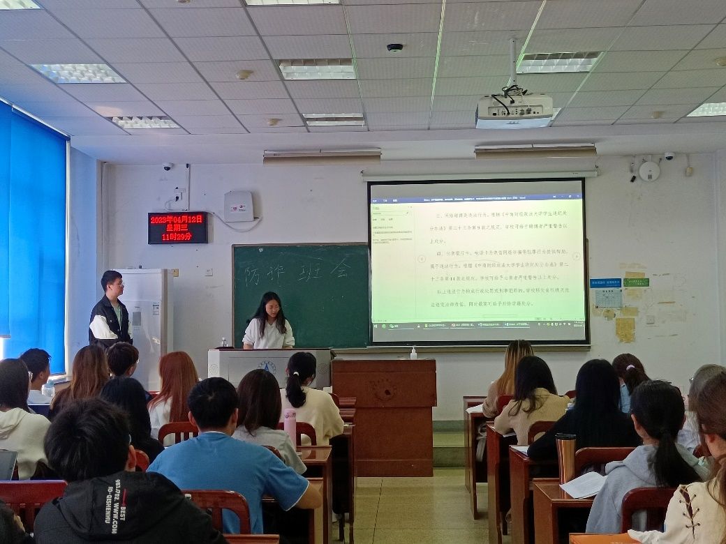 会议第一项,由劳保2101班团支书梁鸿威领学公安部发布的常见针对大学生骗局。安全问题无小事,日常做不到“万无一失”,关键时刻便会“一失万无”。据公安机关警情通报,春季学期以来,我校学生的电信诈骗案件高发,直接经济损失十余万元。诈骗分子的骗术不断更新迭代,同学们既要提高判别能力,不为蝇头小利动心,又要警惕被利用人性的弱点,谨防感性淹没理性。一旦发现可疑情况,一定要积极主动报警并联系辅导员,尽快调查处理才有可能降低财产损失。