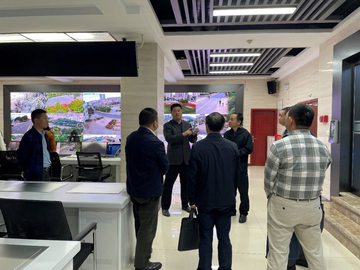 何建新部长一行参观了我校消防监控中心、110应急指挥中心,李远征副部长详细介绍学校消防、安防系统信息化建设情况,何建新部长高度称赞。