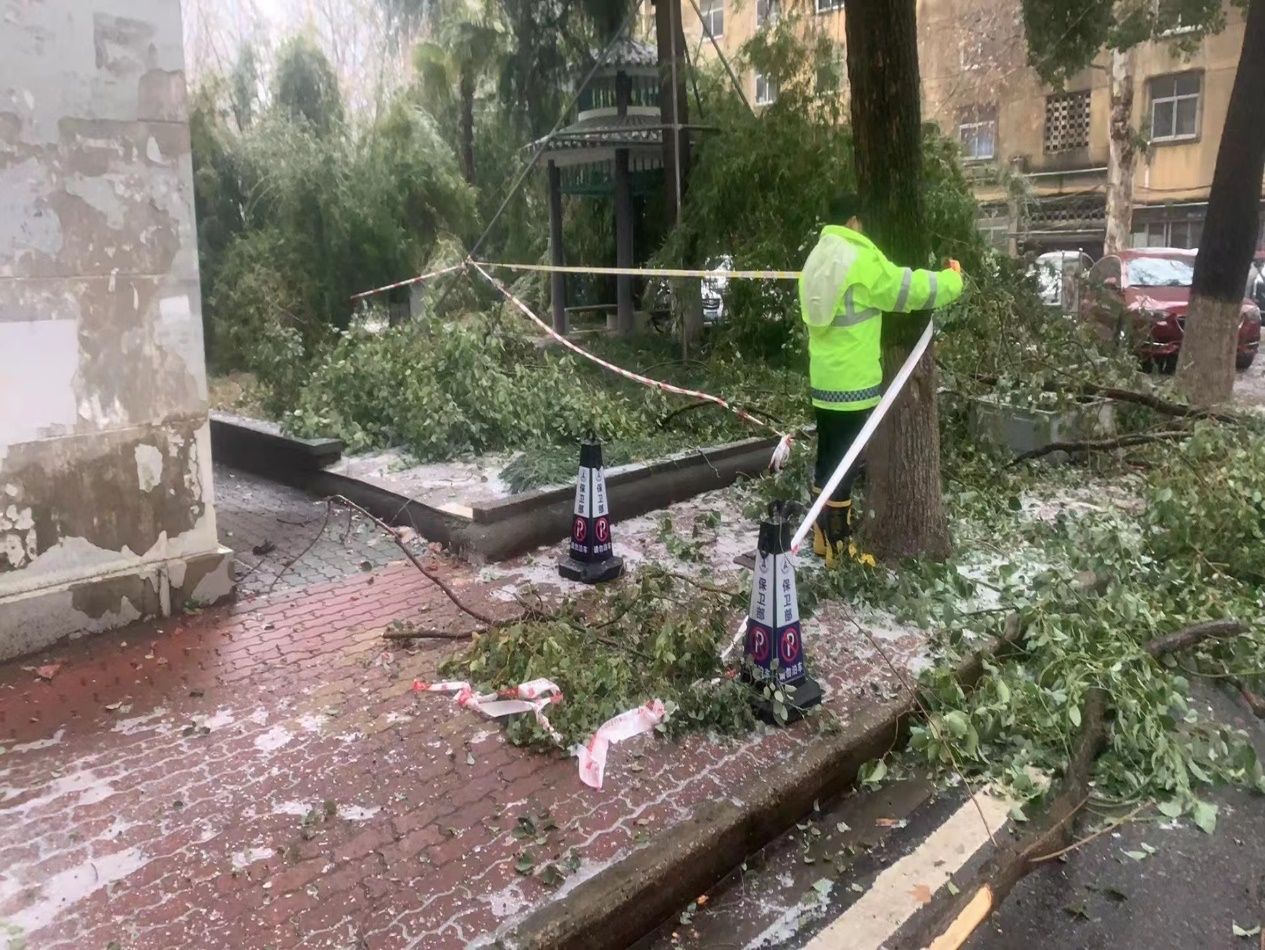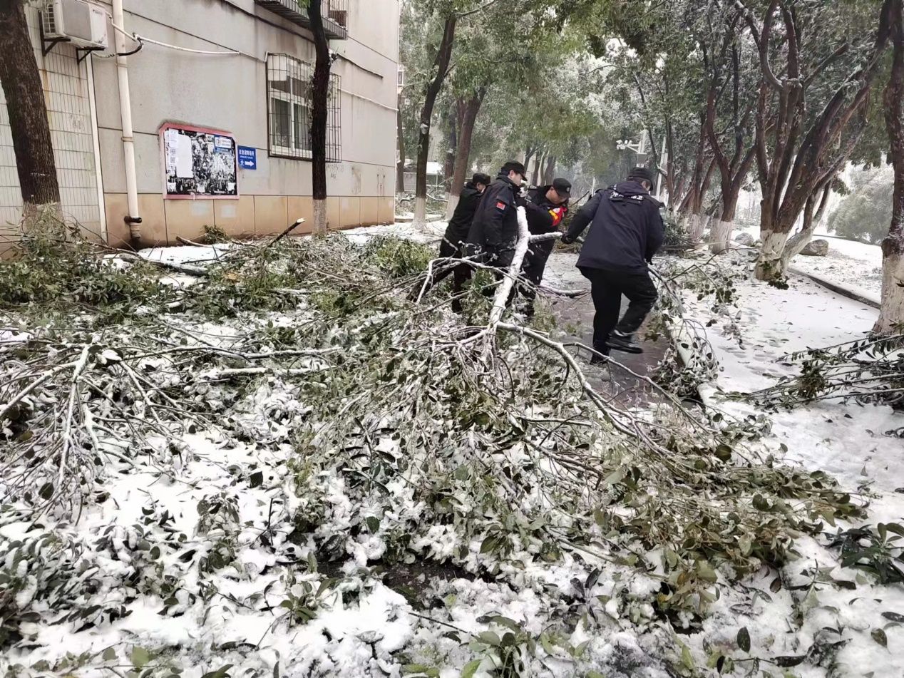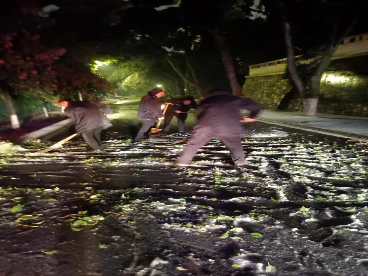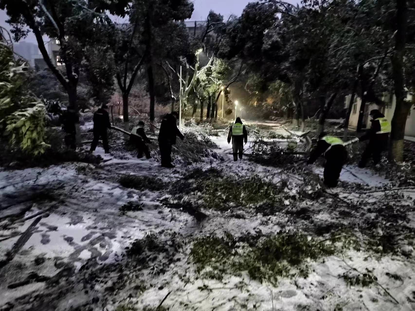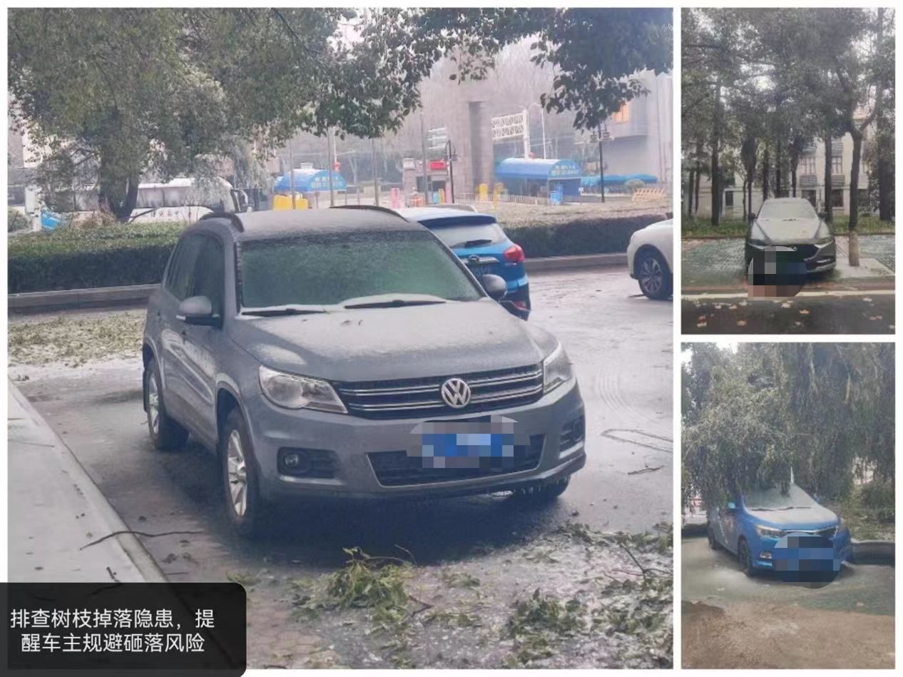 2月2日至4日,受大范围冻雨、风雪等恶劣天气影响,校园内大量树枝折断掉落、雨雪积压覆盖路面,导致部分车辆被树枝砸损,路面堵塞且较为湿滑,严重影响通行,对师生员工人身财产安全造成一定威胁。