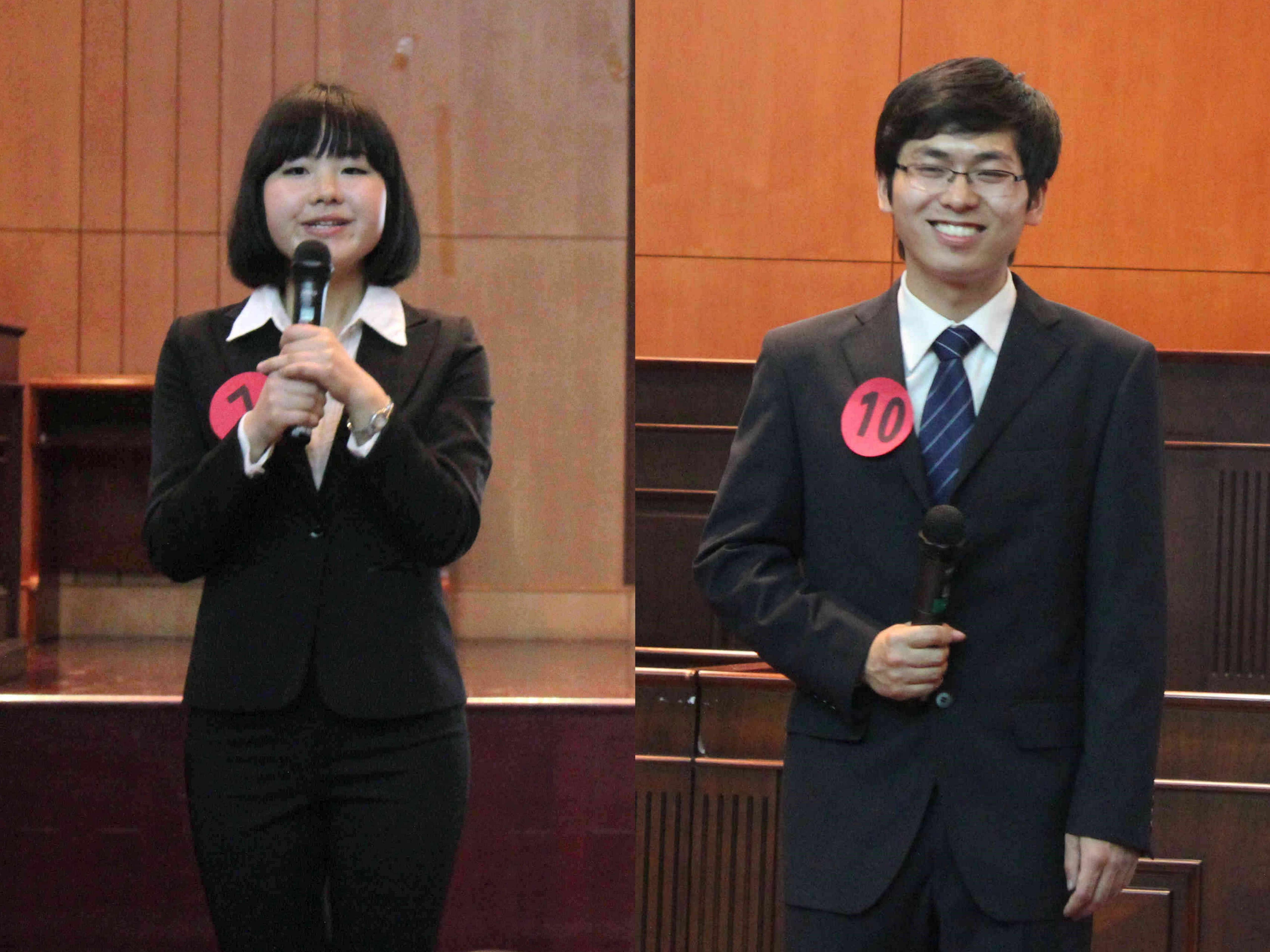 最扣人心弦的是第三环节的压力面试,每位选手选择一个题目进行两分钟应答,评委进行四分钟追加提问,这对于每位选手的临场应变能力是相当大的考验。在这一环节中,七号杨新绿再次引人注目,她对“如何看待高铁降速这件事”的完美解答令在场评委眼前一亮,而我院另一位选手黄帅则针对政务微博发表了自己的见解,赢得了观众的掌声。