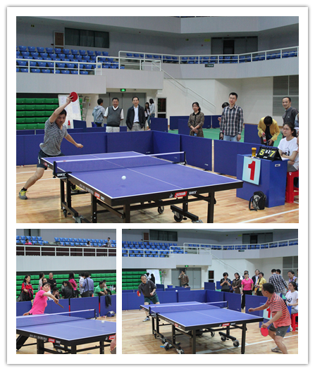 经过简单的赛前热身,比赛正式开始。本场比赛的前两局和后两局均采取单打形式,而第三局采取双打形式。整场比赛精彩无比,其中最振奋人心的要数第二局我院胡先锋老师和后勤集团甘丰老师的对战了。从比赛过程中不难看出,两位老师球技都很高超,比分交替上升,一时难分上下。胡先锋老师以“守”为主,多次精彩地抽球与救球引起现场观众的阵阵呐喊。他手中的球也仿佛被注入生命一般,好几次在空中划过一道漂亮的弧线后准确地飞向对手,赢得观众阵阵喝彩。最终我院胡先锋老师以3:0的成绩在该局中获胜。