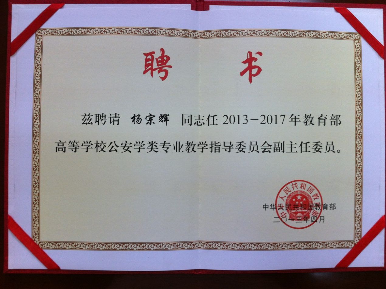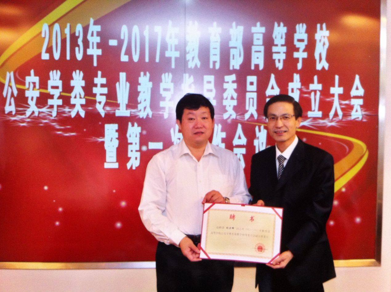 教育部高等学校公安学类专业教学指导委员会成立大会暨第一次工作会议于2013年9月29日在中国刑事警察学院顺利召开。教育部高等教育司副司长刘贵芹、公安部人事训练局教育训练处处长陈延超、教育部高等教育司财经政法与管理教育处处长吴燕等出席了会议,我校法律硕士教育中心主任、侦查学学科带头人杨宗辉教授以教指委副主任委员的身份受邀参加了此次大会。