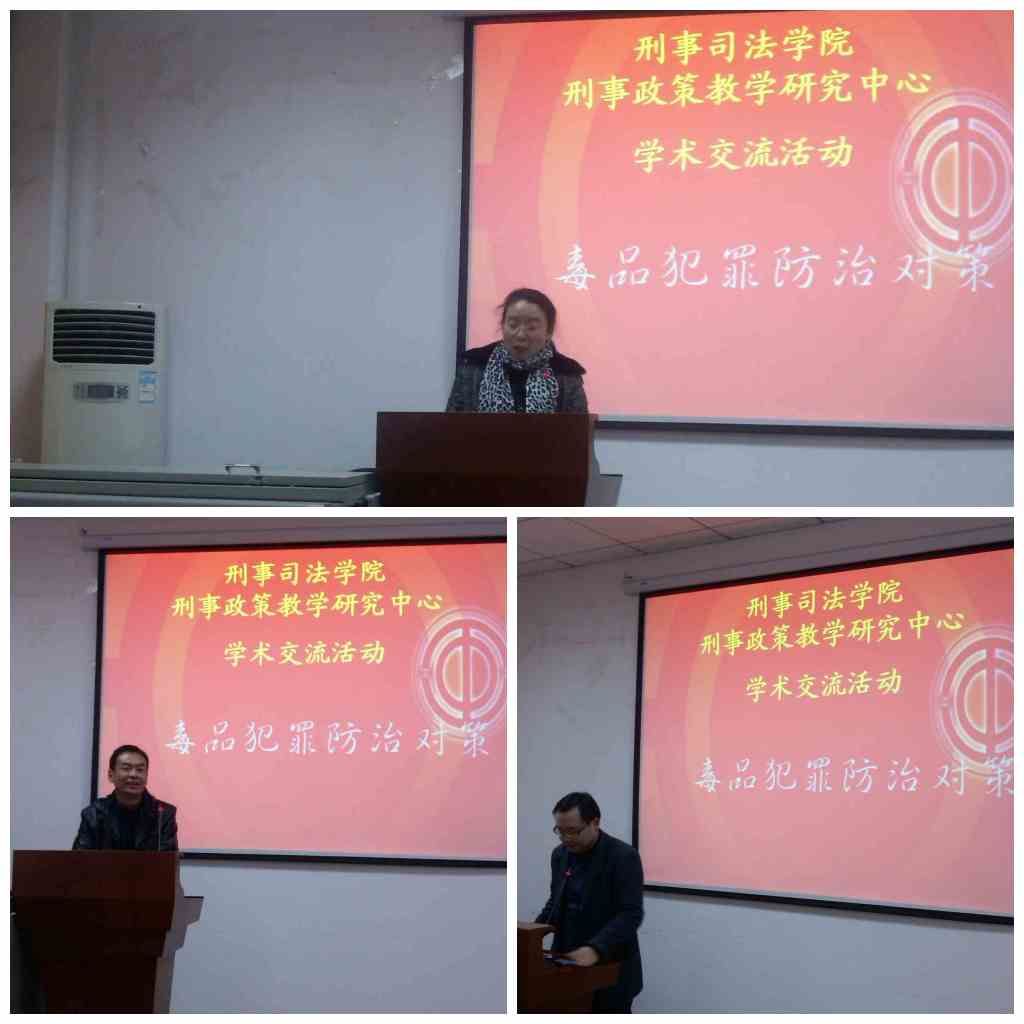 12月12日下午,我院刑事政策教学与研究中心全体教师,在文治楼二楼会议室,举办了以“毒品犯罪防治对策”为主题的学术交流活动。分别从治安学、侦查学、刑法学的不同学科视野,探讨和交流我国现阶段毒品犯罪防治对策,以期促进我院刑法学科和公安学科等不同学科之间的交叉融合。为此,此次活动专门邀请了我院警事科学系侦查学教研室主任何正泉、侦查学博士研究生导师董邦俊教授两位老师参加。活动由中心主任章昌志副教授主持,首先由中心教师治安学硕士研究生导师焦俊峰副教授、刑法学博士研究生导师苏彩霞教授以及警事科学系何正泉主任分别从不同学科研究领域作了主题发言,随后与会教师进行了热烈讨论和交流,最后由董邦俊教授进行了点评。