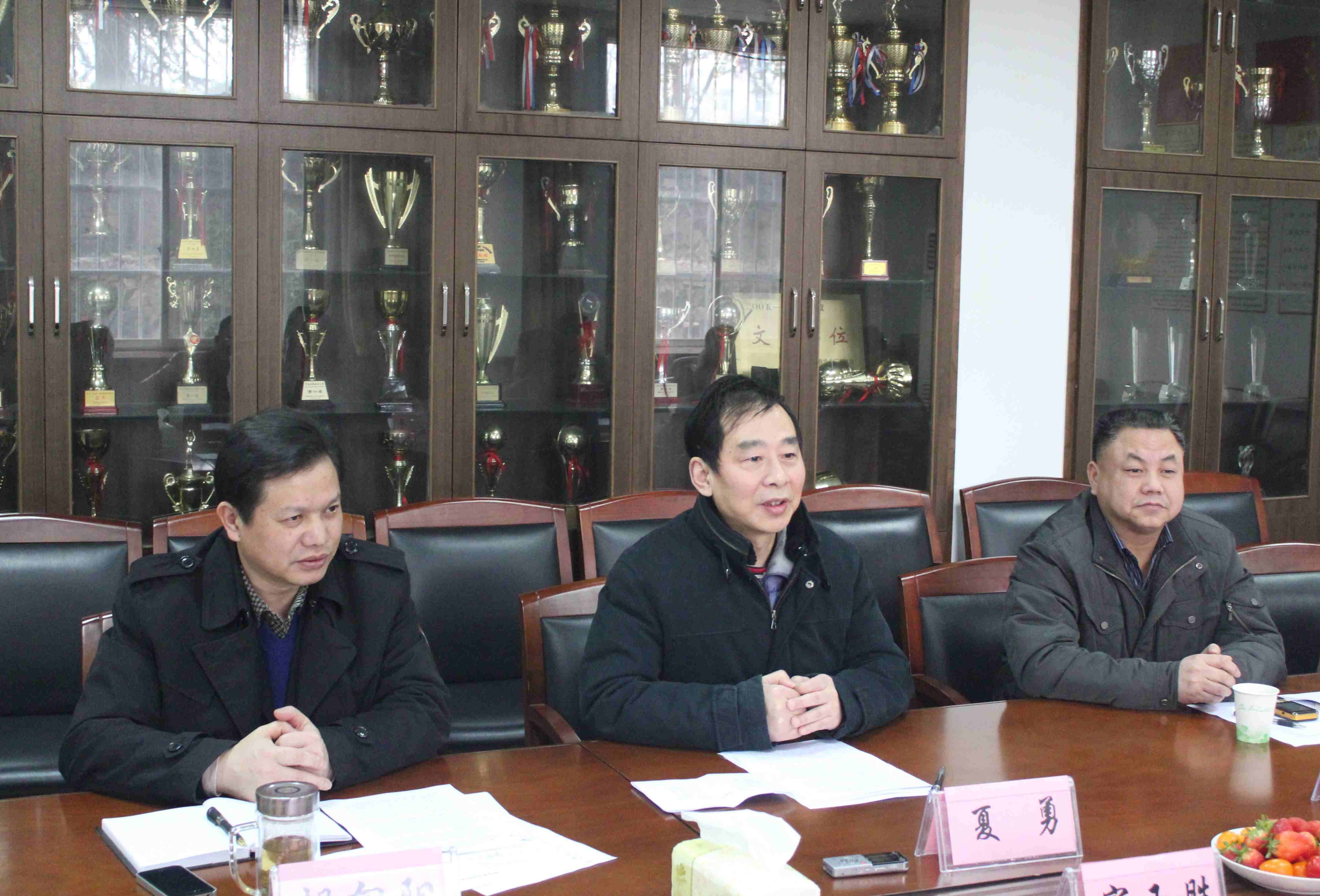 会议伊始,院党委张从发书记对英德监狱监狱长宋玉胜及各位领导的到来表示热烈欢迎。接着,我院院长夏勇教授简要地向来宾介绍了我院的基本情况,首先夏院长介绍了我院学科建设、师资队伍、办学规模等方面的情况,并指出近年来我院各个专业学科之间融会贯通,在各方面均取得了重大突破。其次。夏院长强调“为实践部门服务”一直是我院倡导和追寻的目标,他介绍我院为加强社会服务,成立了“培训中心”,中心由胡向阳副院长任主任,曾大庆老师任副主任,朱俊红老师任办公室主任,“培训中心”成立以来,各方面的工作都很出色,强化了我院的社会服务功能。这次英德监狱宋监狱长一行来我院商议监狱干警培训事宜,是一次难得的合作机遇,必将增进双方的友谊。我院将动用现有一切优质资源,尽我院最大努力为英德监狱的干警上好课、服好务,让大家知识有增长、思想变轻松、大家的友谊更深厚!