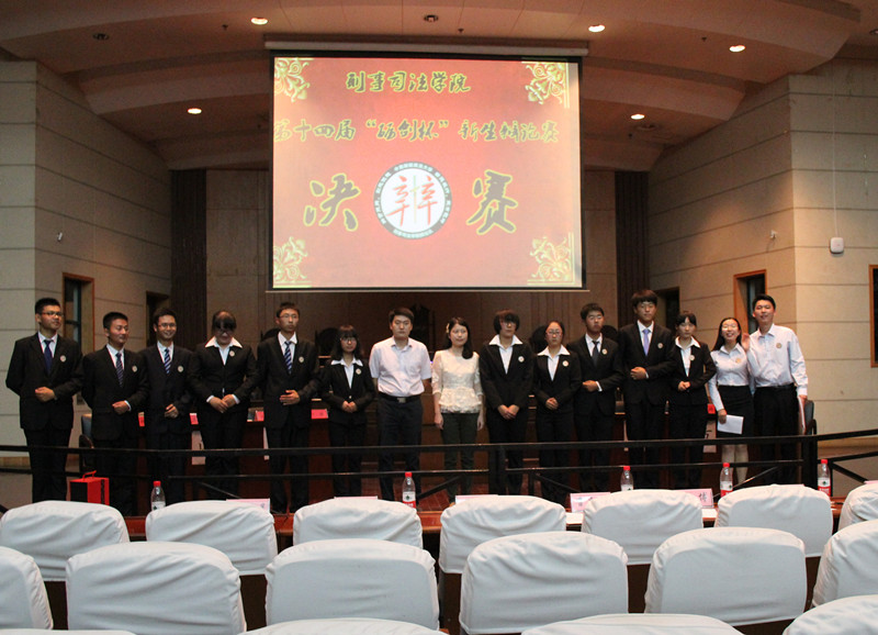 10月26日晚七点整,我院第十四届“砺剑杯”新生辩论赛决赛在文泰模拟法庭一如期举行。院党委副书记向前老师和代理分团委书记兼14级辅导员赵轶老师均莅临现场观摩比赛。担任本场比赛的评委有:2007国际大学生群英辩论赛冠军队成员、校演讲与辩论协会第21届秘书长曹立斌博士,中南民族大学辩论队教练锁满孙星,华中科技大学法学院辩论队前队长张毅轶,我校演讲与辩论协会第25届副会长郑欣、第25届辩手部部长彭博,我院08级辩论队首任队长田野、09级队长王盛。
