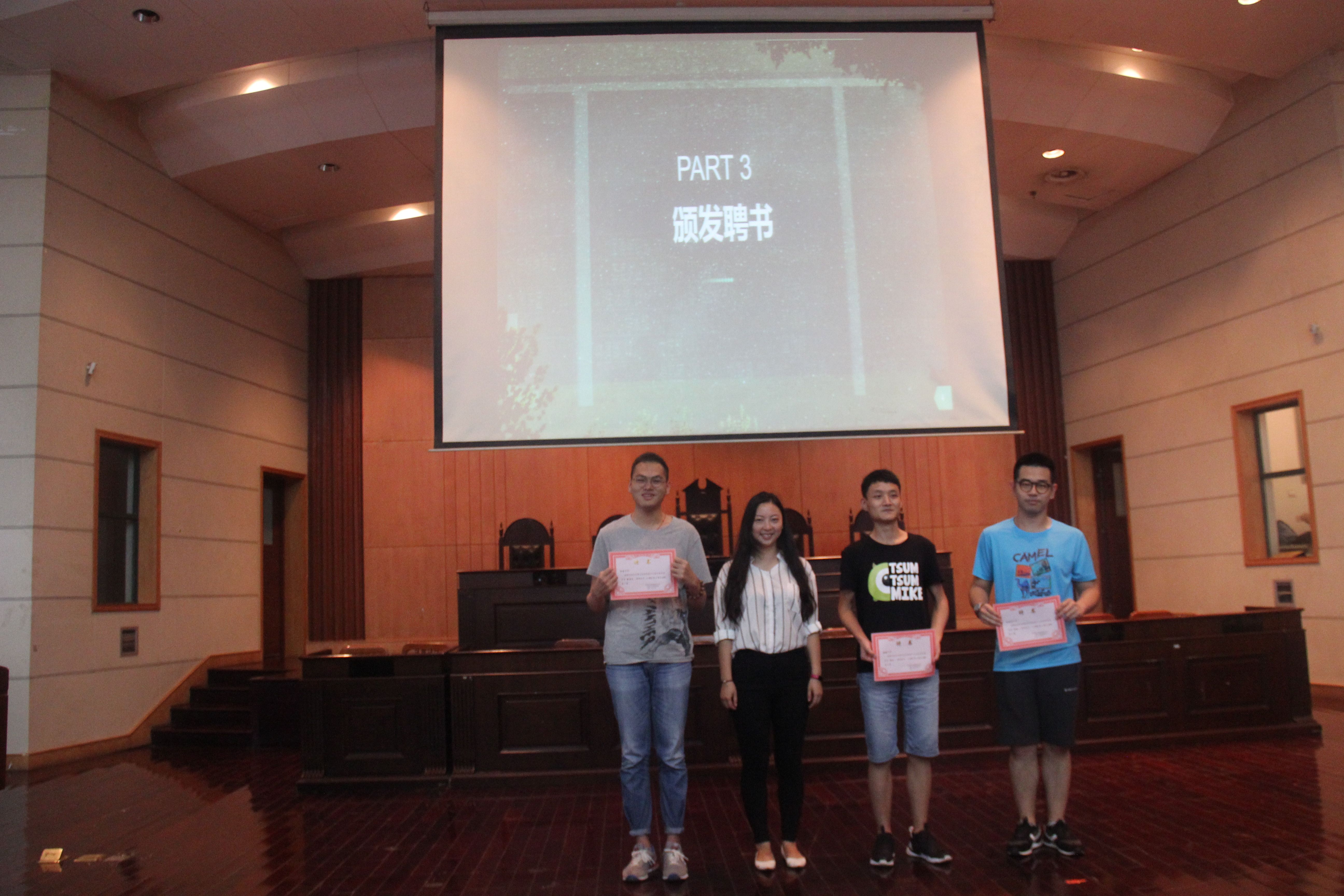 接下来,陆薇老师分别为13级分团委团委副书记及常委,学生会主席、常务主席、秘书长及副主席,新网主任、副主任,志协会长、副会长颁发聘书,肯定他们在过去一年里对团学新志工作的贡献。然后,13级团学新志的干部为14级干部颁发聘书,将接下来一年的工作交付给新一届的干部。