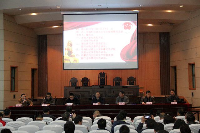 12月7日上午,我院与内蒙古自治区司法厅联合举办的人民监督员业务培训班在文泰楼模拟法庭(一)顺利开班。此次培训班由最高人民检察院组织的内蒙古自治区各盟市检察官、司法局工作人员以及自治区司法厅组织的人民监督员共计120名学员组成。湖北省司法厅党委委员、副厅长陈文贵,内蒙古自治区司法厅党委委员、副厅长张德成,最高人民检察院监督办人民监督员工作处副处长赵勇建,内蒙古自治区高级人民检察院人民监督员办公室主任张立群,湖北省司法厅法制处处长曾建农,我院党委书记李宏出席并参加开班典礼。开班仪式由我院培训中心主任曾大庆老师主持。