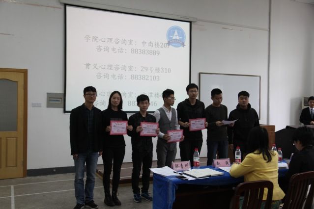 (通讯员:崔豪杰 雷盼 熊潇) 4月20日,我院心理健康活动节班级风采大赛暨闭幕仪式在文清楼召开,校心理中心教研室主任何红娟老师以及学办主任黄文菊老师、14级辅导员赵轶老师、15级辅导员厚今老师、16级辅导员卓张鹏老师、实习辅导员郭青川老师出席了本次活动。