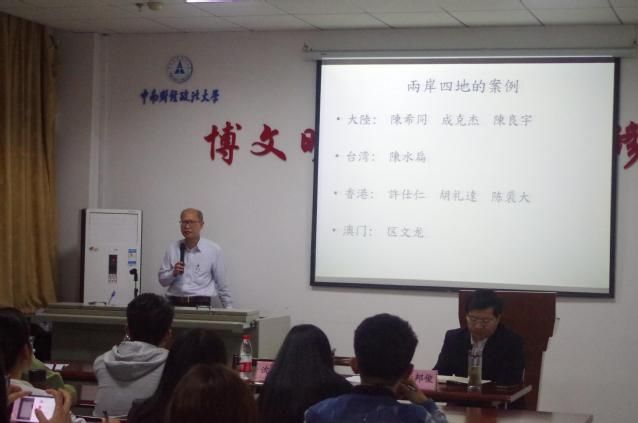 (通讯员郭倩胡伟涛)3月28日,“法治中国”大讲堂第24讲在我校文治楼二楼会议室顺利开讲。本次活动的主讲人是香港律政司专员沈仲平教授。我校部分博硕士研究生和本科生聆听了沈仲平教授关于海峡两岸暨香港、澳门反腐败立法反思的精彩演讲。