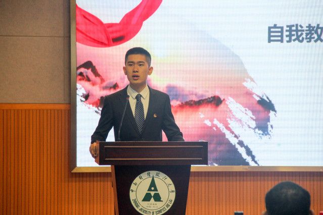 “君子之于天下也,无适也,无莫也,义之与比也。”刑事司法学院学生会主席代锦昭引经据典,围绕一个“义”字将过去一年来学院学生会的各项学生工作进行了梳理和展示。他的答辩内容共四个部分,分别为学生自我服务、自我管理、自我教育、自我监督。在自我服务方面,从传统学生会比赛活动,到“刑侦中南”刑事案例演习大赛、与梦同“刑”新生风采大赛,他阐述了学生会“踏实走心”的工作态度和传承创新的工作方法。“为同学们提供一个展现自我的平台,是学院学生会创办各类活动的初心。”他说。论及自我管理,他详细介绍了学院特色(准)警务化管理制度和教学助理员制度,并对学生会团队建设和团体荣誉进行了展示。谈到自我教育,他总结了党建工作、文明寝室创建工作、分层次一体化培训等四个要点。最后,在学生会自我监督方面,他提出了学院学生会规范章程和权益架设两个主要工作方向。