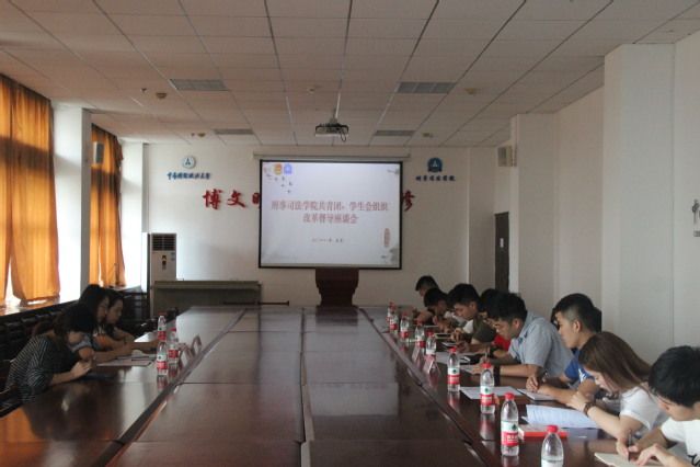 新闻网讯(学生记者 杜诗宇 张晴 摄影 宋天宇)5月15日中午12点30,刑事司法学院共青团、学生会组织改革督导座谈会在文治楼二楼会议室召开。