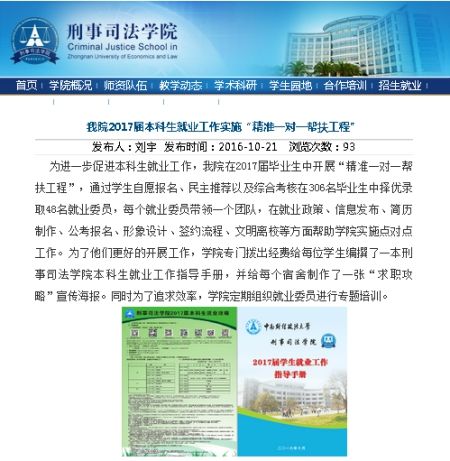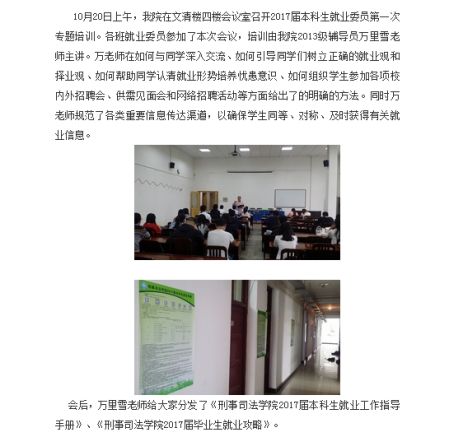 (5)分发《刑事司法学院2017届本科生就业工作指导手册》、《刑事司法学院2017届毕业生就业攻略》。