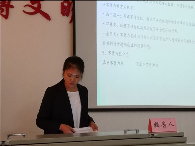 博士生成云卿做了题为《作为犯和不作为犯的区分》的报告,通过疑难案例指出理论和实践中对于作为犯和不真正不作为犯区分的争议,梳理学术史关于区分标准的争论,提倡从形式到实质的双重评价标准。