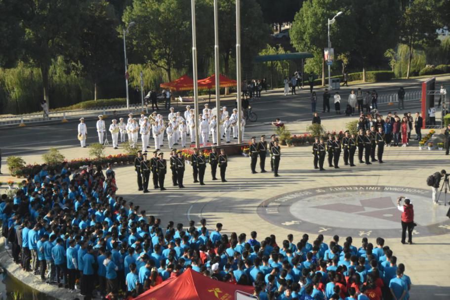 校党委副书记王文贵教授在致辞中表示,学校70年来,潜心学术,立德树人,服务社会,传承文明,在此期间,发展壮大了一批高素质、能战斗的优秀学生组织。国旗护卫队已成为推进全校师生爱国主义教育、思想政治工作的先驱。王书记高度肯定了国旗护卫队历年来取得的一系列成绩,王书记指出,队伍成立了华中地区首个学生组织(社团)党支部,建立了国旗文化研究中心,组建了大学生骨干宣讲团正是我校思想政治教育领域内的排头兵。王书记希望全体师生校友继续保持高昂斗志,牢牢把握历史的机遇,稳中求进、继承创新、改革发展,为创造高质量、有特色的“双一流”高校而努力奋斗!