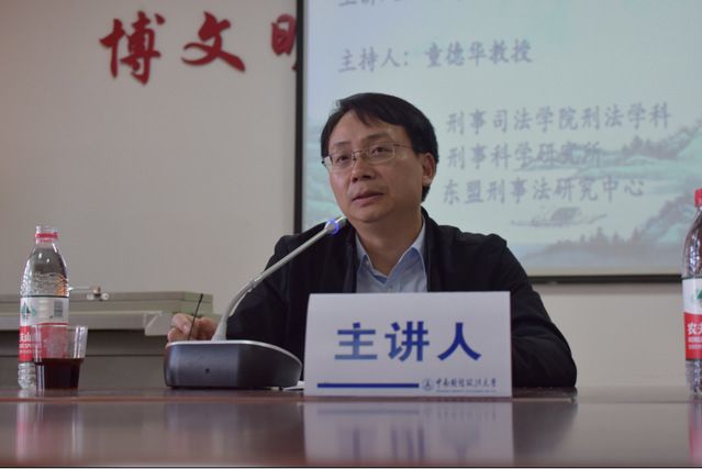 (学生记者颜美宁马小琴)10月28日下午,“扫黑除恶中的刑事政策”学术讲座在文治二楼会议室成功举办。本次讲座由刑事司法学院、刑事科学研究所和东盟刑事法研究中心共同举办,特邀上海政法学院副校长、博士生导师姚建龙教授担任主讲,我院童德华副院长担任主持人。周详教授参与此次讲座,部分硕博研究生到场聆听。