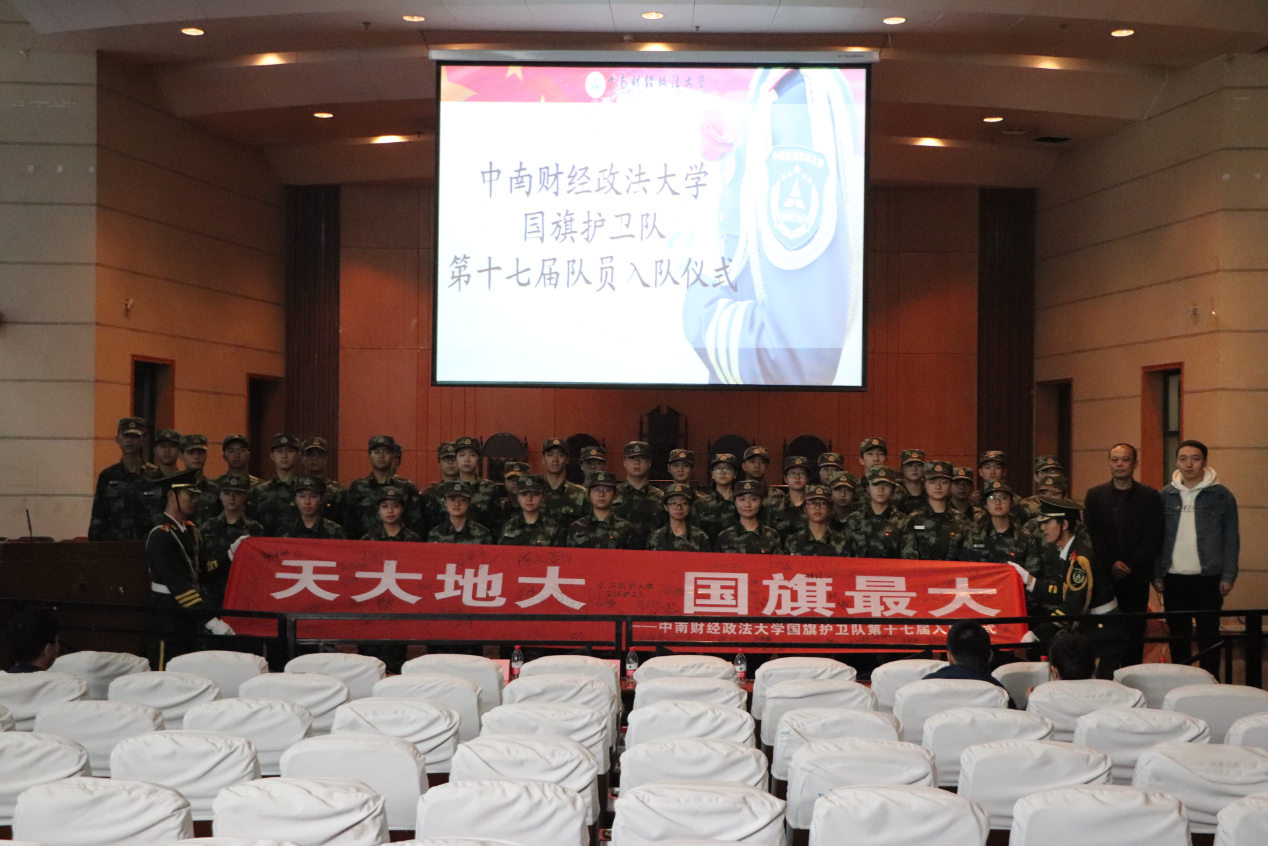 最后,第十七届队员入队仪式伴随着横幅签名合影圆满结束。就像这一个月还来不及说再见的集训,就像那一路走来的风雨兼程。他们为国旗而并肩,因热爱而相聚,因相知而生幸。所有的珍贵都该被铭记,不忘的是他们赤诚的心。今后,国旗护卫队将会不忘初心,砥砺前行,为推动校园精神文明建设和思想政治建设而不断努力奋斗。