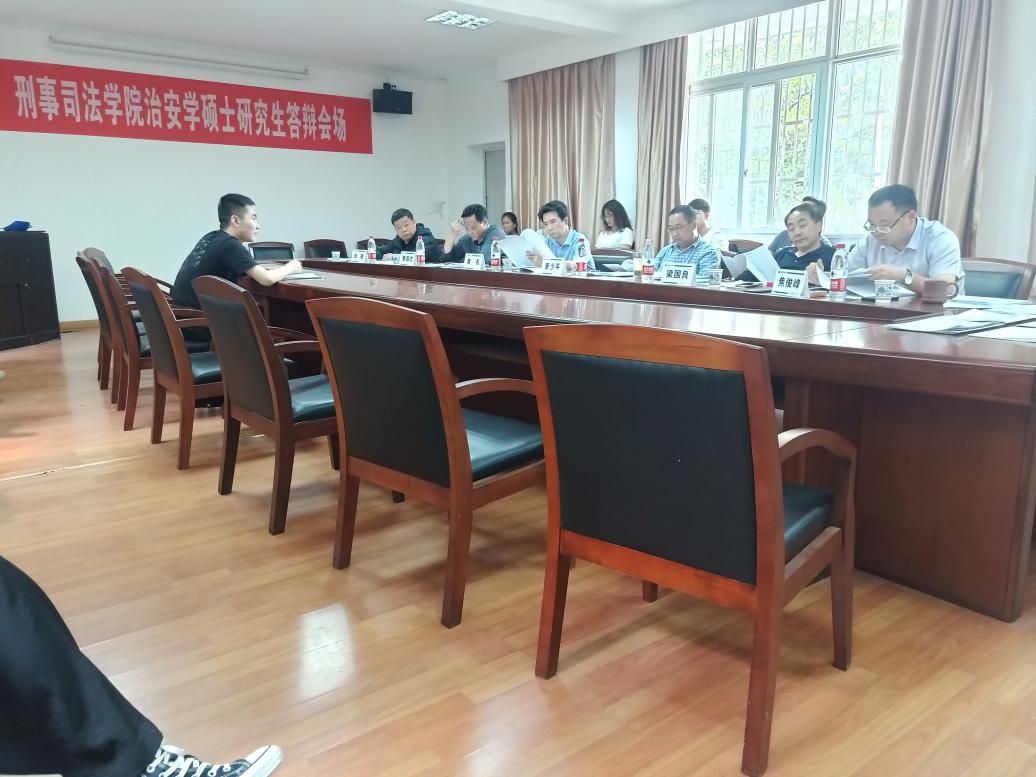 (学生记者伍绍歌)5月20日下午14时,我院在文清楼一楼会议室进行2016级治安专业研究生硕士论文答辩。湖北警官学院黄石副教授、米兰电竞·(中国区)董少平教授、梁国良副教授、章昌志副教授、焦俊峰副教授、张敬副教授6人组成答辩委员会,黄石副教授任答辩委员会主席。参与答辩的3名硕士研究生为2016级治安专业的李晓敏、文雅、胡阳阳同学。