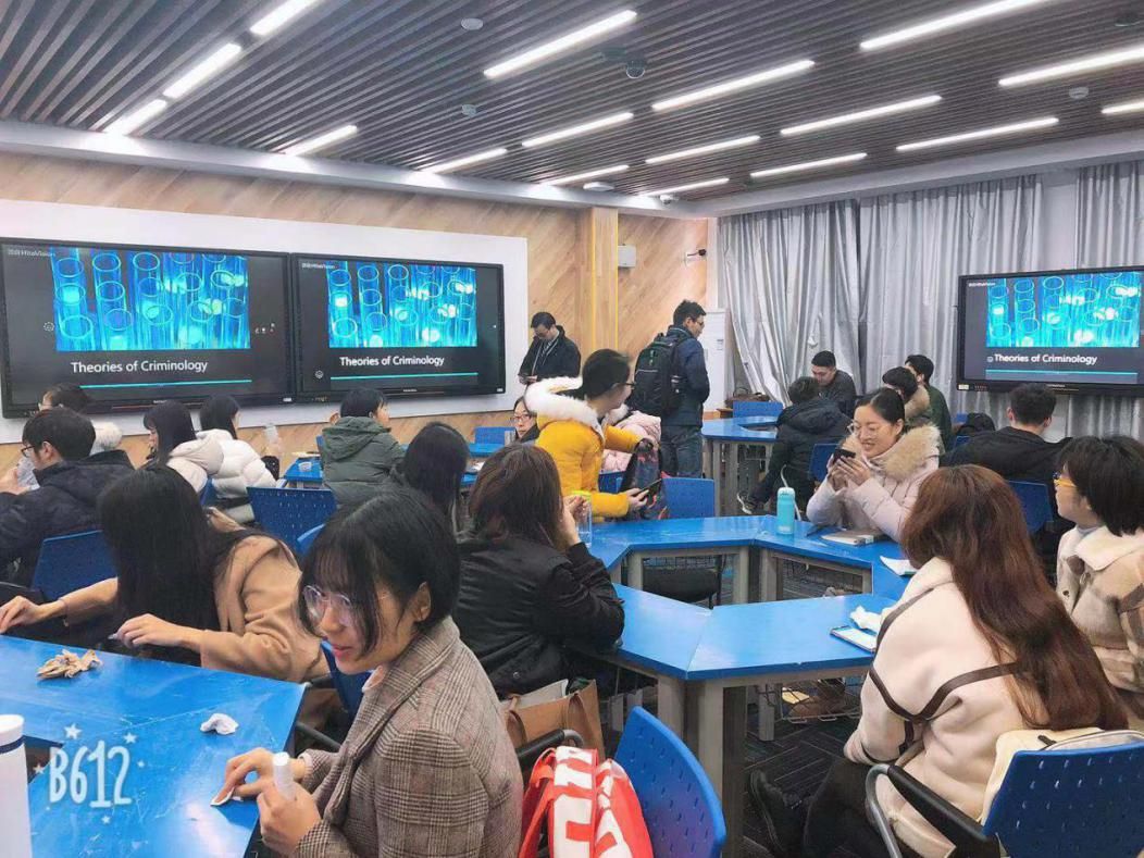 (通讯员:文沙)2019年4月26日下午,刑事司法学院周凌老师为2018级刑法学研究生开设的犯罪学(双语)终于在文澴楼607智慧教室落下帷幕。在该课开课之前,周凌老师“智慧教学之星 移动教学男神”的称号就流传在学生之间,再加上我校专门为雨课堂量身打造的智慧教室,更是吸引了大量的学生慕名来听课,尽管该课将选课人数限定为32人,但在可容纳下47人的文澴607仍旧座无虚席。