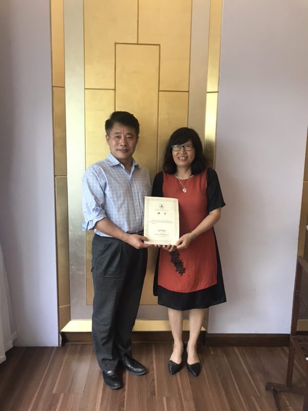 2019年4月,童德华教授为越南法官学院杨雪棉教授发放聘书