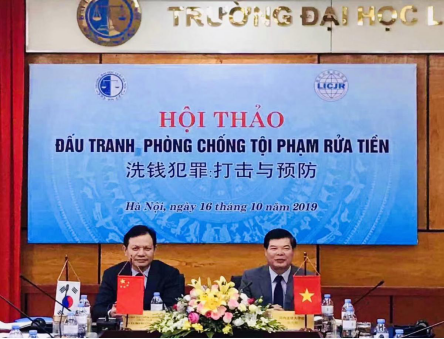 2019年10月15日至16日,2019“国际刑事司法联盟”年会暨“洗钱犯罪的打击与预防”学术研讨会在越南河内法律大学隆重召开,此次会议以“洗钱犯罪的打击与预防”为主题。我院院长胡向阳教授、梁国良教授及厚今、梁艳艳、梅功雪老师一行参与大会各项活动。参加此次大会的嘉宾还有:中国政法大学郭金霞教授、越南河内法律大学陈光辉校长、越南河内法律大学张光荣教授、越南河内法律大学国际交流处阮文光处长、越南国家银行阮氏翠英处长、越南公安部阮玉英教授、韩国国立警察大学崔真革教授等,同时还有中国政法大学、华东政法大学、西北政法大学、河内法律大学以及越南国家银行、公安部、司法部、最高法院等理论与实务部门的其他专家学者100多人参加了会议。