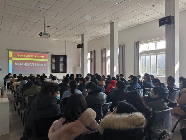 为深入贯彻落实习近平总书记关于新时代师德师风和教师队伍建设的有关讲话精神,贯彻落实教育部、省教育厅和学校关于全面加强师德师风建设的有关文件精神,进一步加强和改进学院师德师风建设,提高学院教职工队伍的思想政治素质和职业道德水平,2021年1月14日下午,我院在文清楼四楼会议室召开了刑事司法学院研究生导师师德师风建设专题工作会议。会议由董邦俊副院长主持,全体研究生导师参加此次会议。