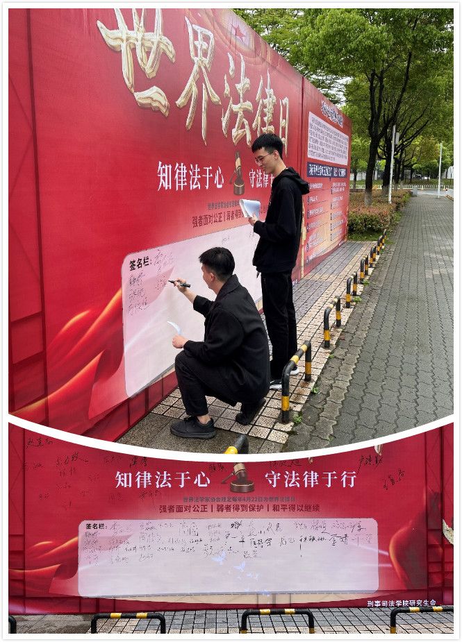 (通讯员: 李亚飞 杨云皓)4月22日为世界法律日,各国的法官和法学家都会采取不同的方式来庆祝这个节日,为宣传和普及法律做出努力。为深入学习宣传习近平法治思想和习近平生态文明思想,弘扬法治精神,树立法治思维,增进师生爱护地球、呵护家园的生态文明意识,4月22日,由刑事司法学院研究生会主办的“世界法律日,法律伴我行”——习近平法治思想校园宣传活动顺利开展。