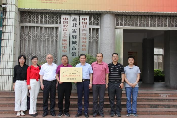 (图为麻城一中被授予我校优质生源基地合影留念)