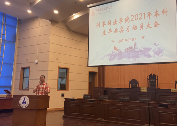 (新闻网讯 通讯员黄文菊)为深入学习贯彻习近平总书记在党史学习教育动员大会上的重要讲话精神,不折不扣落实学校党委相关决策部署,教育引导全院师生切实做到“学党史、悟思想、办实事、开新局”,学院党委聚焦立德树人、人才培养中心工作,于6月8日中午在文泰楼模拟法庭一,及时召开“2021年本科生毕业实习动员大会”,对暑期安全稳定、教育管理及学生实习实践等阶段性重点任务做出安排部署。刑事司法学院院长胡向阳、院党委书记张志刚、副院长董邦俊、副书记万里雪与全体实习带队老师及相关年级辅导员等参加了此次大会。会议由郭泽强副院长主持。